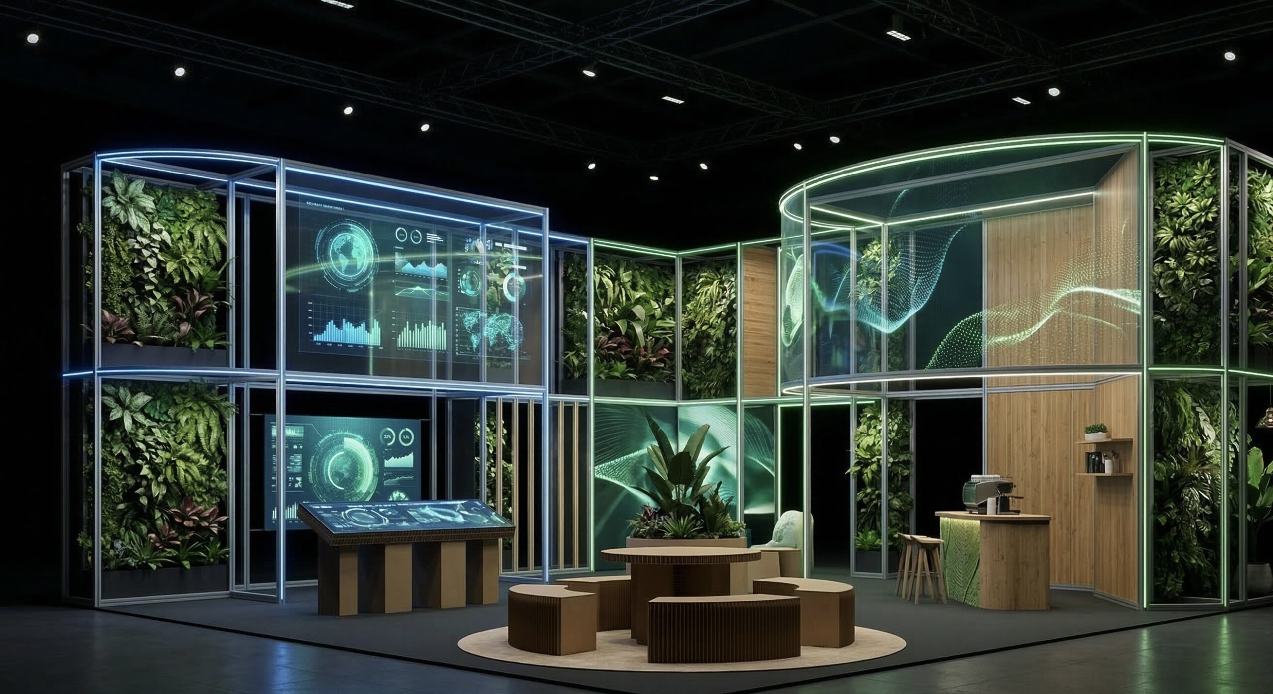 Q: Can a green stand still look premium? A: Absolutely. High-end sustainable design often uses “honest” materials like wood, stone, and recycled metals which create a sophisticated, modern aesthetic that feels more premium than cheap laminates.